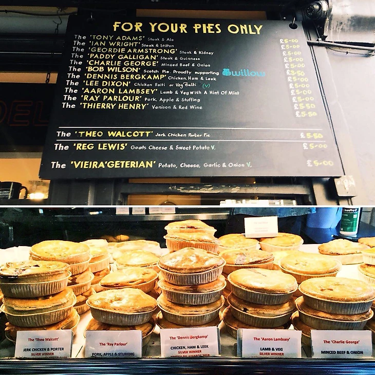 В 2011 году Пол и Никки Кэмпбелл, живущие за углом от «Эмирейтс», начали продавать домашние пирожки в своем дворе. В следующем году они открыли полноценное кафе, еще одно заведение сегодня работает у вокзала King’s Cross. Главная особенность: все пирожки здесь названы в честь легенд «Арсенала». «Тони Адамс» – с мясом, «Иан Райт» – мясо и сыр, «Деннис Бергкамп» – курица, ветчина и лук-порей.