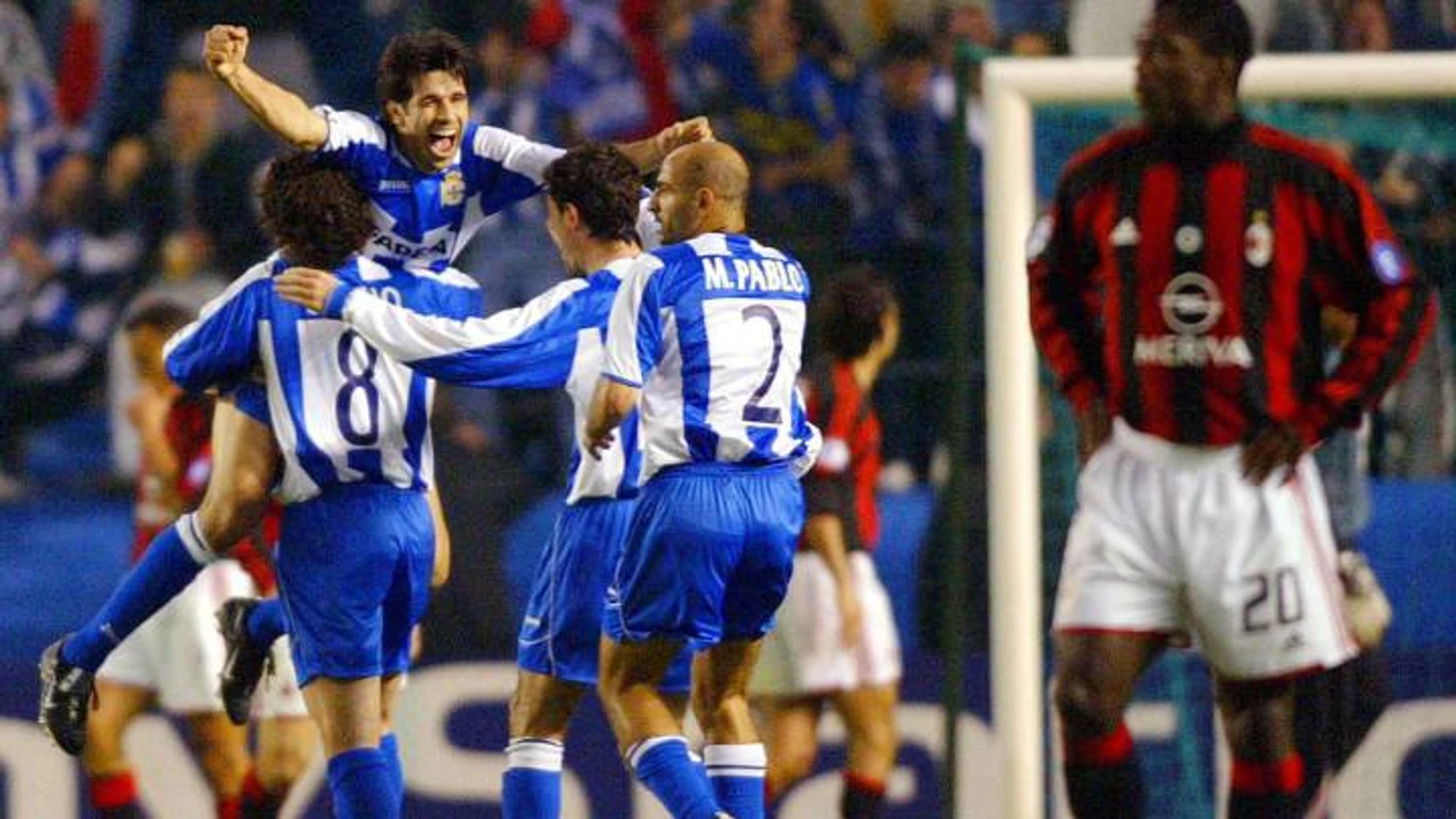 Расклад оказался похожим. Итальянцы и испанцы вышли из группы, набрав по 12 очков. «Милан» обошел «Депортиво» по личным встречам и выиграл группу. Во втором туре в Ла-Корунье будущий победитель Лиги Чемпионов выиграл 4:0. Гол Кларенса Зеедорфа (17-я минута) в сумме с хет-триком Филиппо Индзаги (33-я, 55-я и 62-я минуты) шокировали болельщиков команды, незадолго до этого переигравшей на выезде прошлогоднего триумфатора турнира «Баварию».