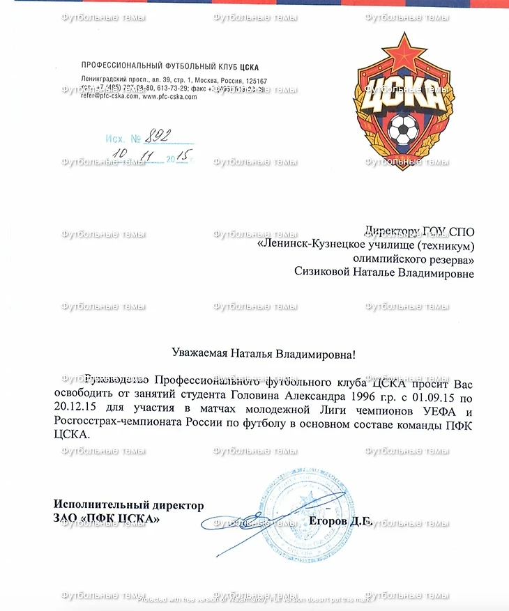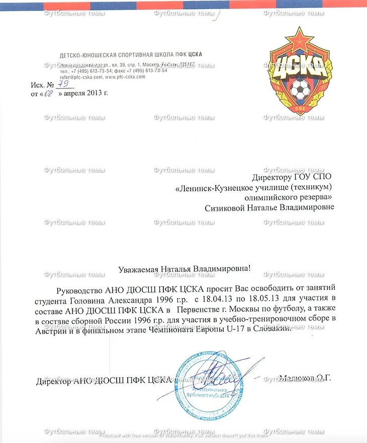 Когда Головина стали привлекать к матчам за юношескую, а затем и основную команду ЦСКА, документы московский клуб направлял именно в УОР Ленинска-Кузнецкого. Они станут важными доказательствами для того, чтобы училище получило компенсацию за подготовку футболиста.