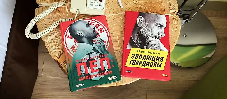 Лео, правда, читает свое – две книги про Гвардиолу.