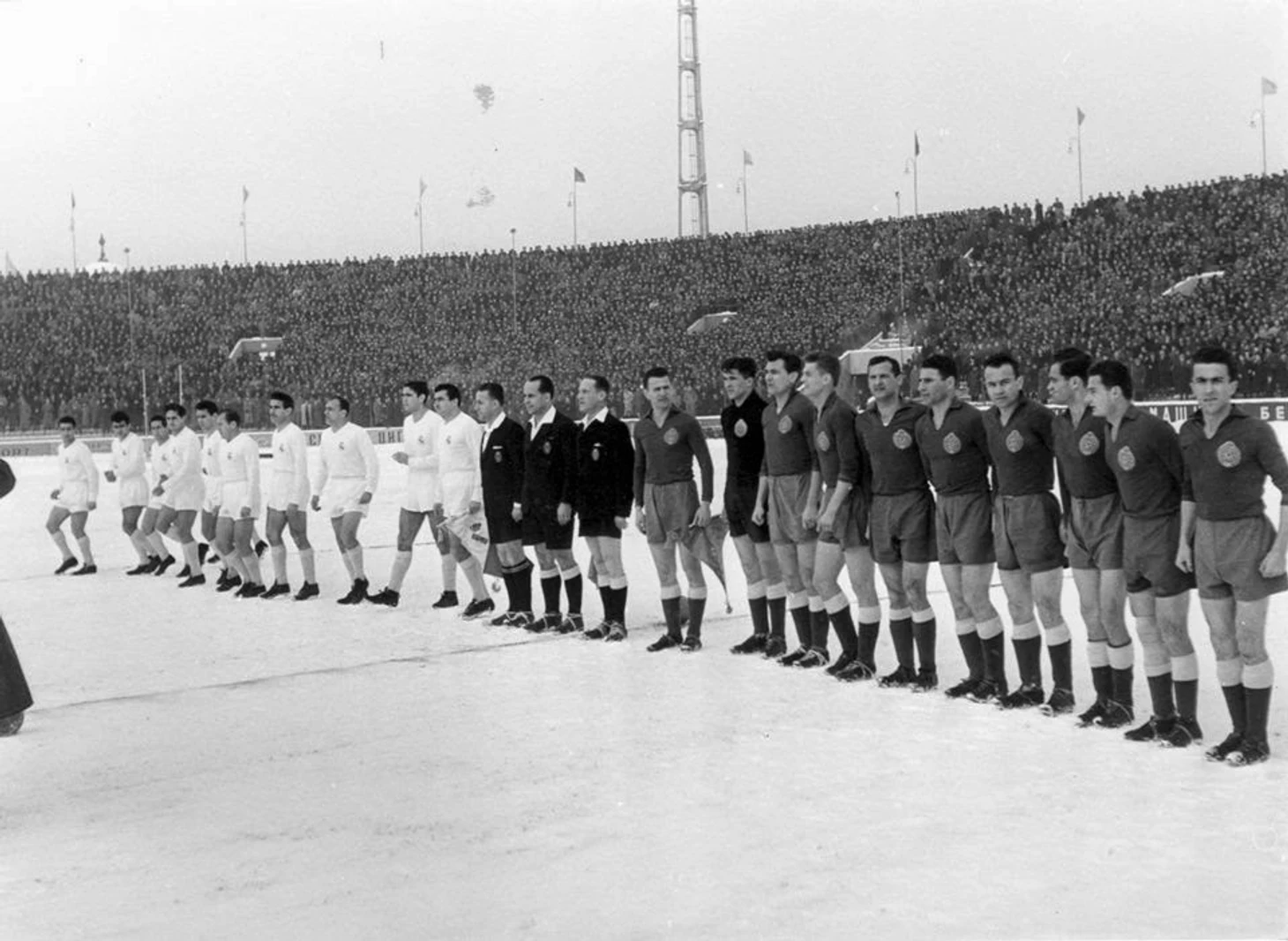 Ненадолго вернёмся к редактору L’Equipe Габриэлю Ано. Я с вами был не до конца честен, Габриэль сказал, что «Вулверхэмптон» ещё не сыграл с «Реалом» и «Миланом», поэтому называть чемпионом его не правильно. А сказал он так, потому что и «Реал», и «Милан» были сильнейшими клубами той Европы. Фактически это был скрытый финал. Чтобы добавить значимости итальянскому клубу, напомнинм, что в то время за «Милан» играл легендарный Чезаре Мальдини, а тренировал их уругвайский нападающий Эктор Пуричелли. Первая встреча началась с гола уже на шестой минуте. Это исправился за четвертьфинал Хосе Эктор Риал. Через три минуты Гуннар Нордаль сравнивает счёт. На 25 минуте «Реал» опять выходит вперёд, но «Милан» пока не собирается сдаваться и на 30 минуте снова сравнивает. За пять минут до конца Роке ОЛЬСЕН выводит «Реал» вперёд, а на 62 минуте Ди Стефано ставит окончательную точку. В ответной встрече «Реал» открывает счёт первым, правда в этот раз пришлось гол ждать целых 65 минут. Дальше в игре судья ставит два пенальти на 69 минуте и на 86, Даль Монте оба раза реализовывает их, но на больше «Милан» не хватило.