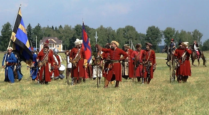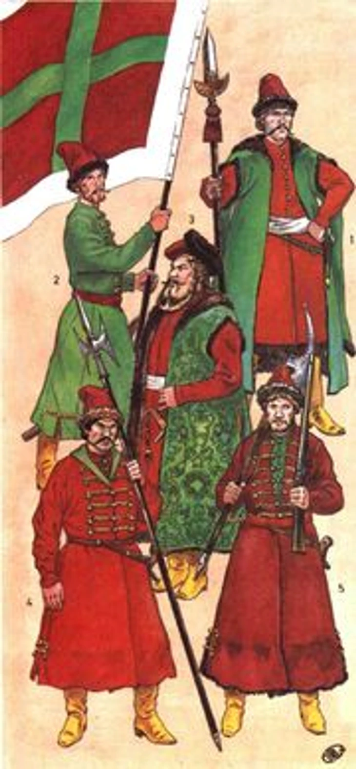 Самый многочисленный стрелецкий полк имел красно-белое знамя.