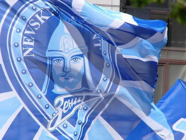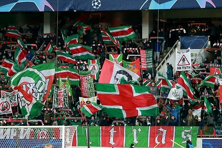 Флаг района «Преображенское», на территории которого находится локомотивский стадион. Видимо, цвета связаны с формой Преображенского полка, упомянутого в гимне.