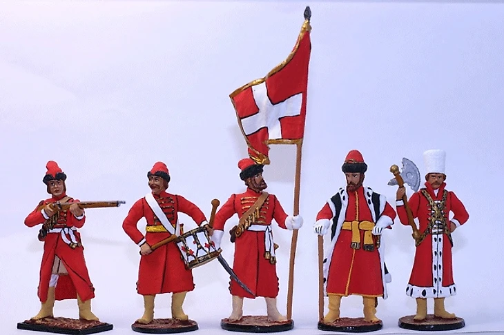 Таким конным подразделениям, как гусары и уланы, были свойственны красно-синие цвета.