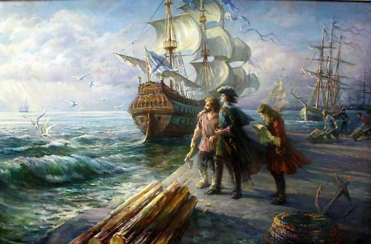 Основатель Петербурга сделал символом флота бело-голубой Андреевский флаг и носил на груди соответствующую ленту, впоследствии включенную в герб города. Помимо этого он ввел фейерверки того же цвета.
