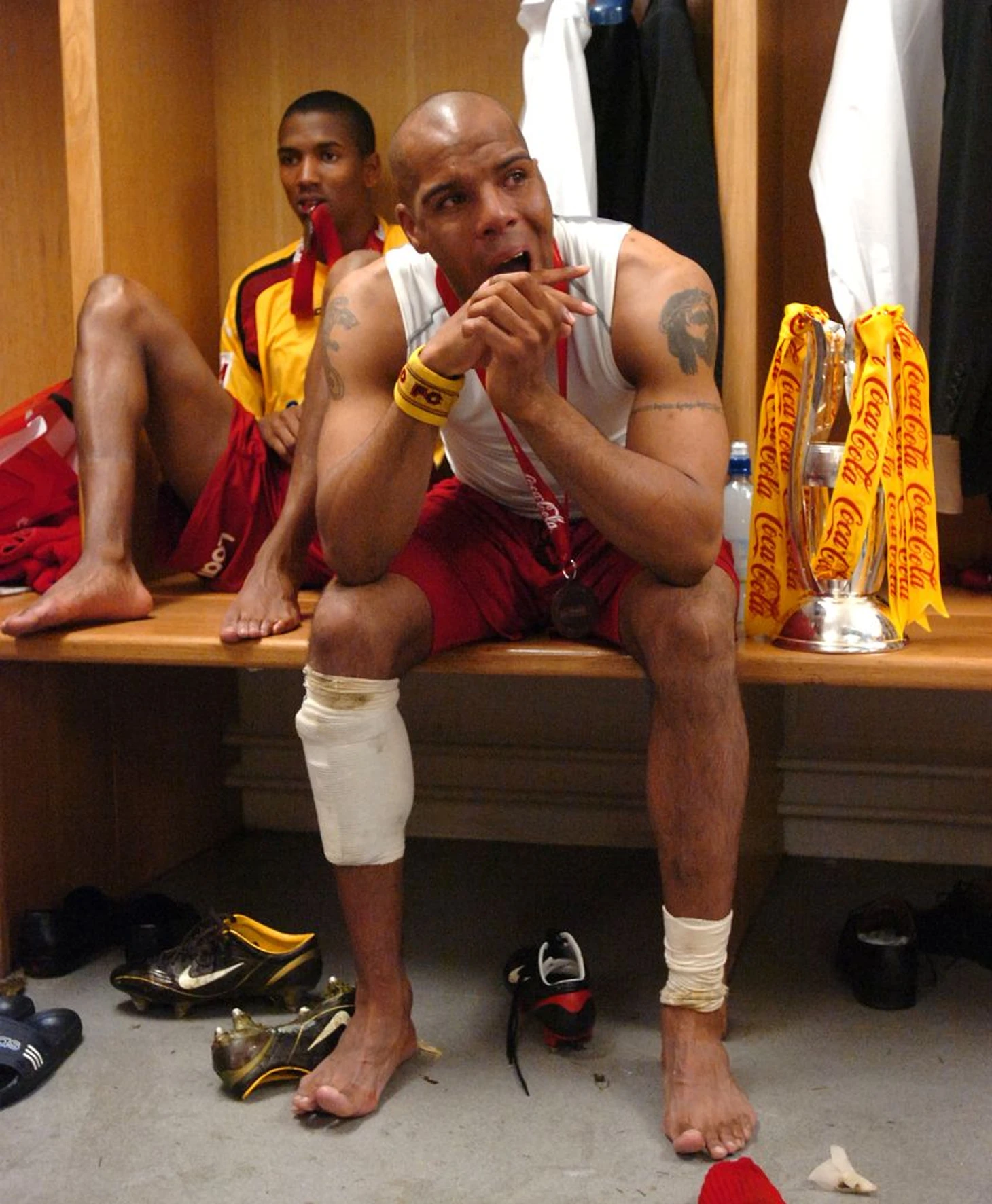 «Я снова стал счастливчиком, который оказался в раздевалке. Айди в тот вечер был великолепен. По правде, я хотел тут сфотографировать Эшли Янга крупным планом, но подумал, что Айди рассердится, если я сделаю фото Янга, а не его. Поэтому я сфотографировал Айди, но посмотрите на Янга на заднем плане.»