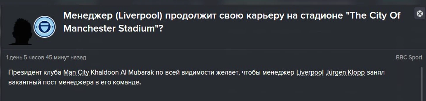 - В Англии случилось невероятное - Арсенал стал чемпионом! МанСити уволили незамедлительно Пеллегрини, и теперь все новостные сайты трубят об возможных кандидатурах. Среди фаворитов - Эмери,Вилаш-Боаш, Аллегри. Но владельцы клуба хотят другого: