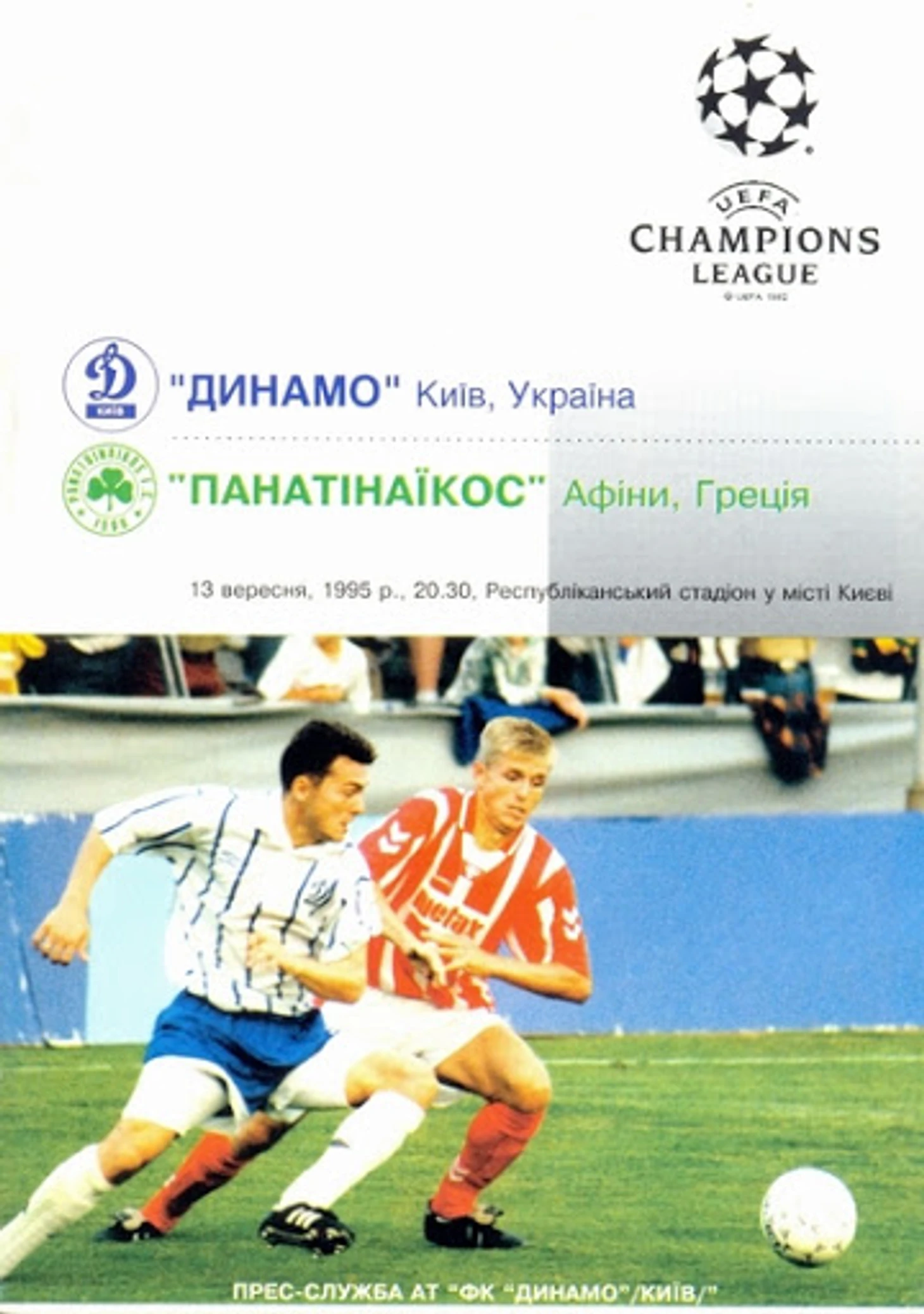13 сентября 1995 года начались матчи группового этапа. Так получилось, что «Всеафинскому Спортивному Клубу» пришлось вместе 6 матчей провести 7. Все дело в дисквалификации киевского «Динамо». Не пытаясь осудить или обвинять кого бы там ни было, обойдемся сухими данными. Арбитр матча Антонио Лопес Ньето, четырехкратный лучший судья Испании, то ли до матча «Динамо»-«Панатинаикос» (1-0), то ли после, обвинил руководителей украинского клуба в попытке подкупа. Попытка была за день до матча. Фигурировали 2 шубы, около 30 тысяч долларов и Суркис. В результате киевлян отстранили и команда Реброва, Шевченко , Шовковского, Лужного, Калитвинцева вынуждена была ждать своего шанса еще немного. Руководил командой легенда клуба строгий и колоритный Йожеф Сабо.