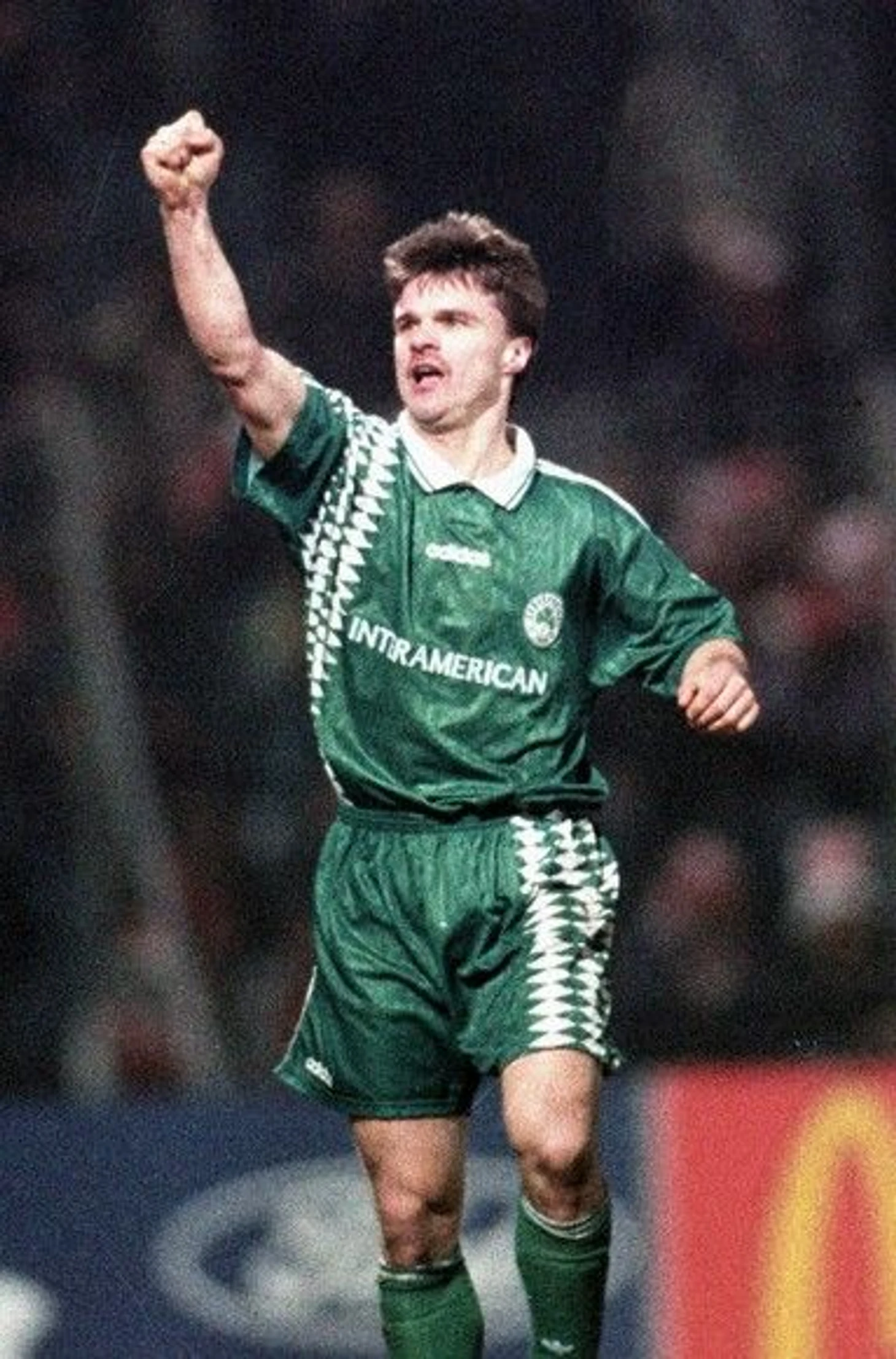 «Панатинаикос» за счет своего самого известного болельщика, Йоргоса Вардинояниса, в те годы старался держаться на плаву европейского футбола и был сильнейшим в Греции. После двух кубков страны случился золотой дубль в сезоне 1994/95, в следующем году «Пао» снова станет чемпионом. Богатый корабельный магнат, конечно не мог создать клуб уровня «Реала» или «Баварии». В Греции это расточительность. Ради двух-трех матчей в сезоне никто не будет выкладываться бесконечно, а в Европе цены росли на всё, включая футболистов, начиналась эпоха агентов-киллеров. Бывший капитан танкера создал крепкий футбольный клуб. Из «Ривер Плейт» был куплен довольно мастеровитый, немного театральный Хуан Борелли, который на удивление бойко заиграл в Афинах. В воротах стоял вратарь сборной Польши Южеф Вандзик, Никополидис в свои 25 опять сел в запас, по сути поседев там. В защите трудились Апосталакис и Узунидис. Постепенно выводили в состав Басинаса. В атаке блистал, другого слова не нахожу, Кшиштов Варжиха (Важиха).