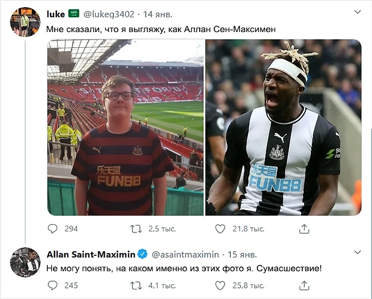А вот как Аллан с позитивом поддержал парня, которому сказали, что он выглядит, как звезда «Ньюкасла»: