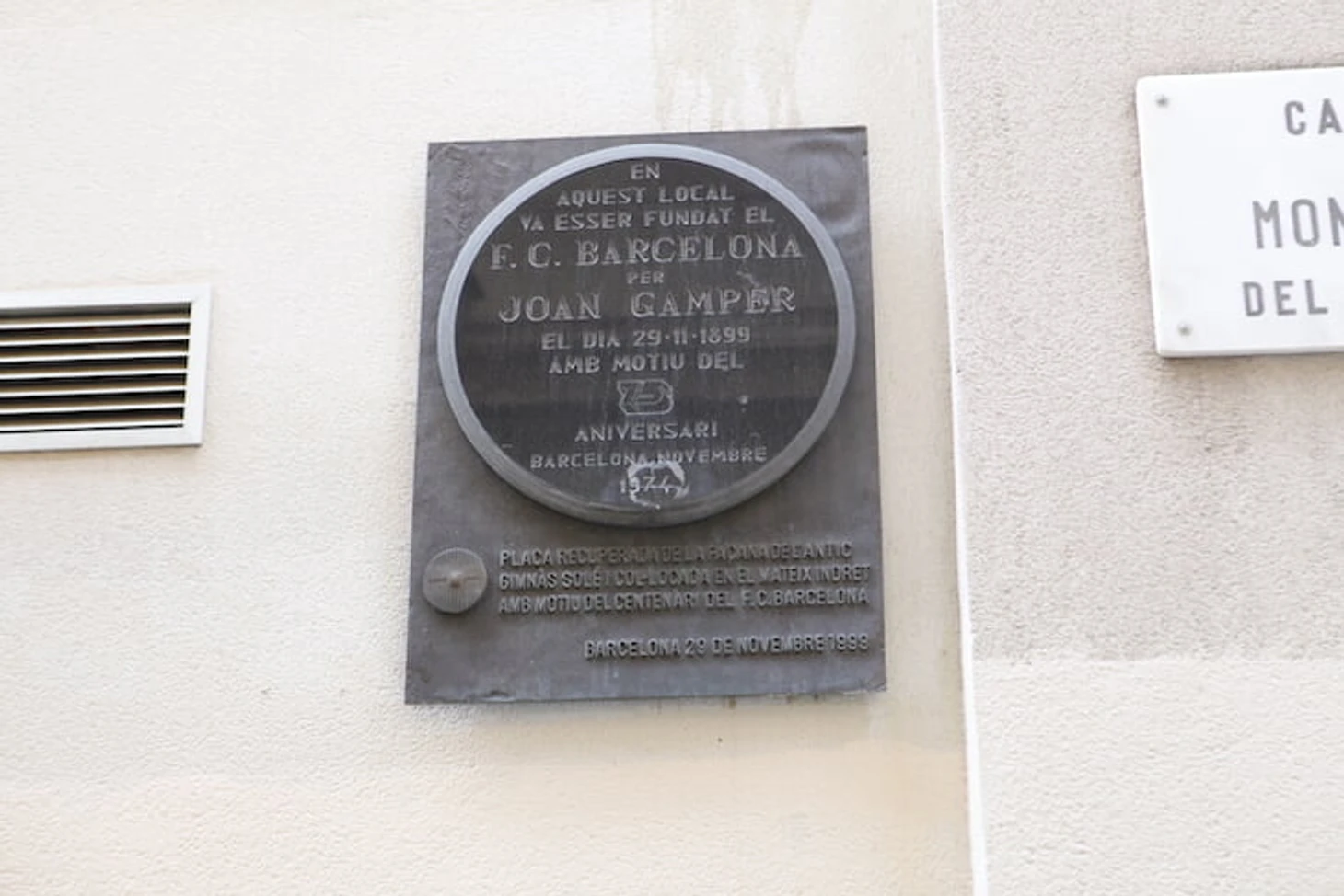 «В этом здании, 21 ноября 1899 года, Жоан Гампер основал футбольный клуб «Барселона».