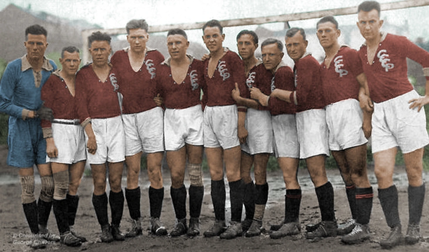 1927 год. Сборная СССР во время турне по Германии. Рабочие из России выиграли 9 матчей из 10, проиграв только сборной рабочих из Австрии (но взяв реванш через пару дней).