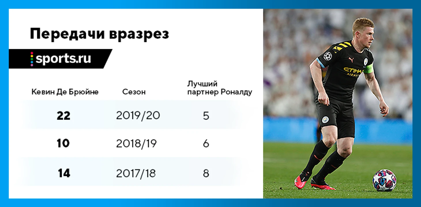 «Как креативный игрок я всегда хочу, чтобы впереди был кто-то быстрый и умеющий открываться за спину защитникам. Это мне сильно помогает. Для моей работы важно наличие такого атакующего игрока. Кроме того, что я мог бы навешивать на три метра выше обычного, а Криштиану все равно замыкал бы такие подачи», – аргументировал Де Брюйне.