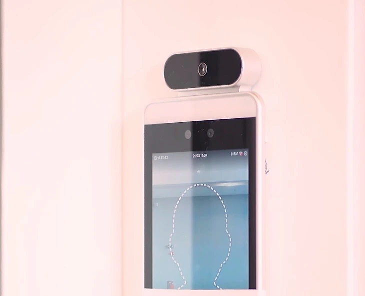 Специальная камера сканирует температуру посетителя. Если все хорошо, автоматическая дверь открывается.