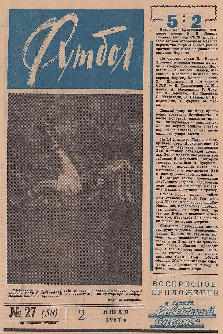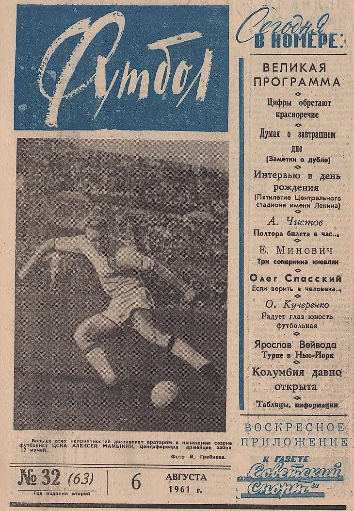 В честь 60-летия еженедельника «Футбол» продолжаем сериал на основе обложек культового издания. Сегодня у нас дайджест главных событий 1961 года!