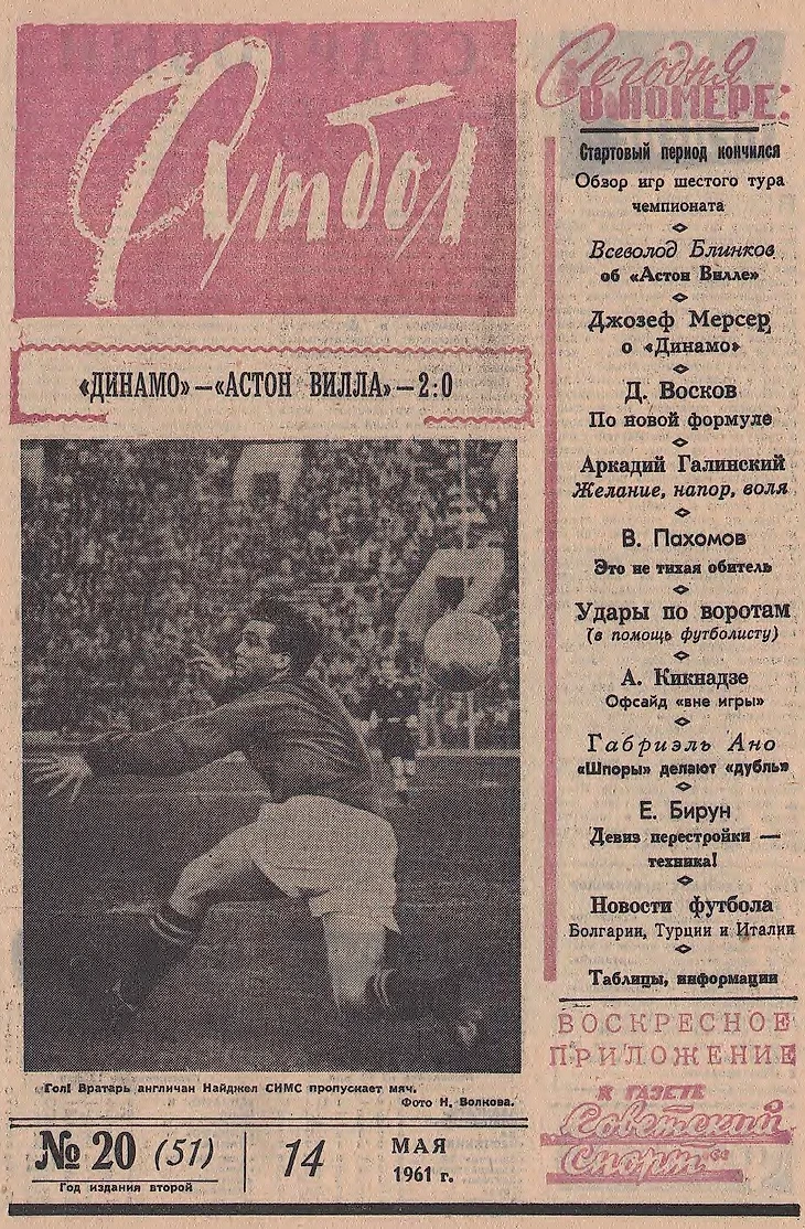 На гастроли в СССР приехал шестикратный чемпион Англии – «Астон Вилла». За дублем Игоря Численко и победой «Динамо» наблюдало больше 50 тысяч любителей футбола на трибунах Центрального стадиона им. Ленина.