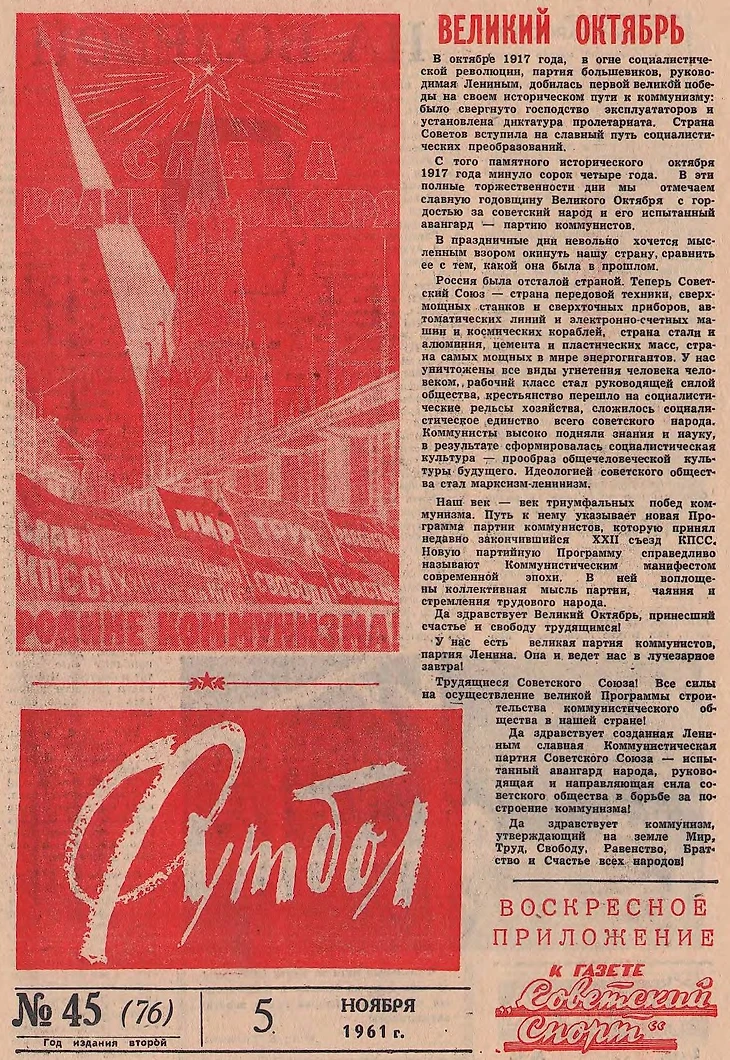 Кстати, чемпионом СССР впервые стали динамовцы Киева. Места на обложке им тоже не нашлось.