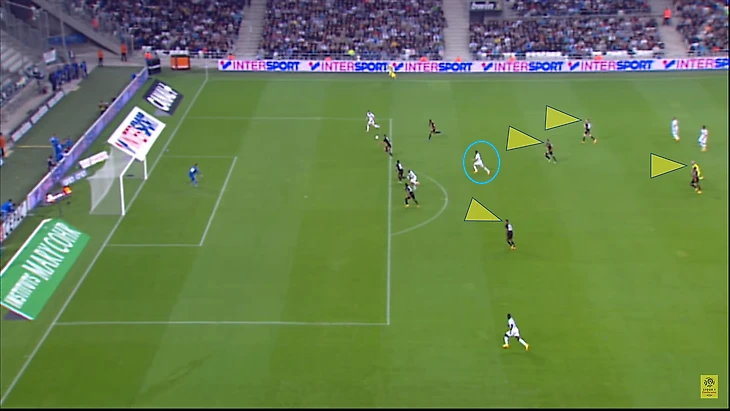 Благодаря навыкам игроков "Марселя" и плохой прессинговой структуре "Ланса", команда Бьельсы много раз могла менять направление атаки в позиционной атаке, а а первый гол ОМ забил с углового.