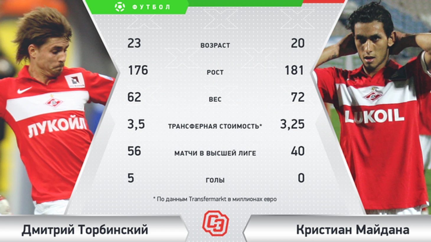 В целом вполне сопоставимые показатели. Майдана в отличие от Торбинского не забивал, но был на три года моложе. В свои 20 спартаковский воспитанник тоже оставался без голов. Трансферная же стоимость оценивалась примерно одинаково с небольшим перевесом в пользу Дмитрия.