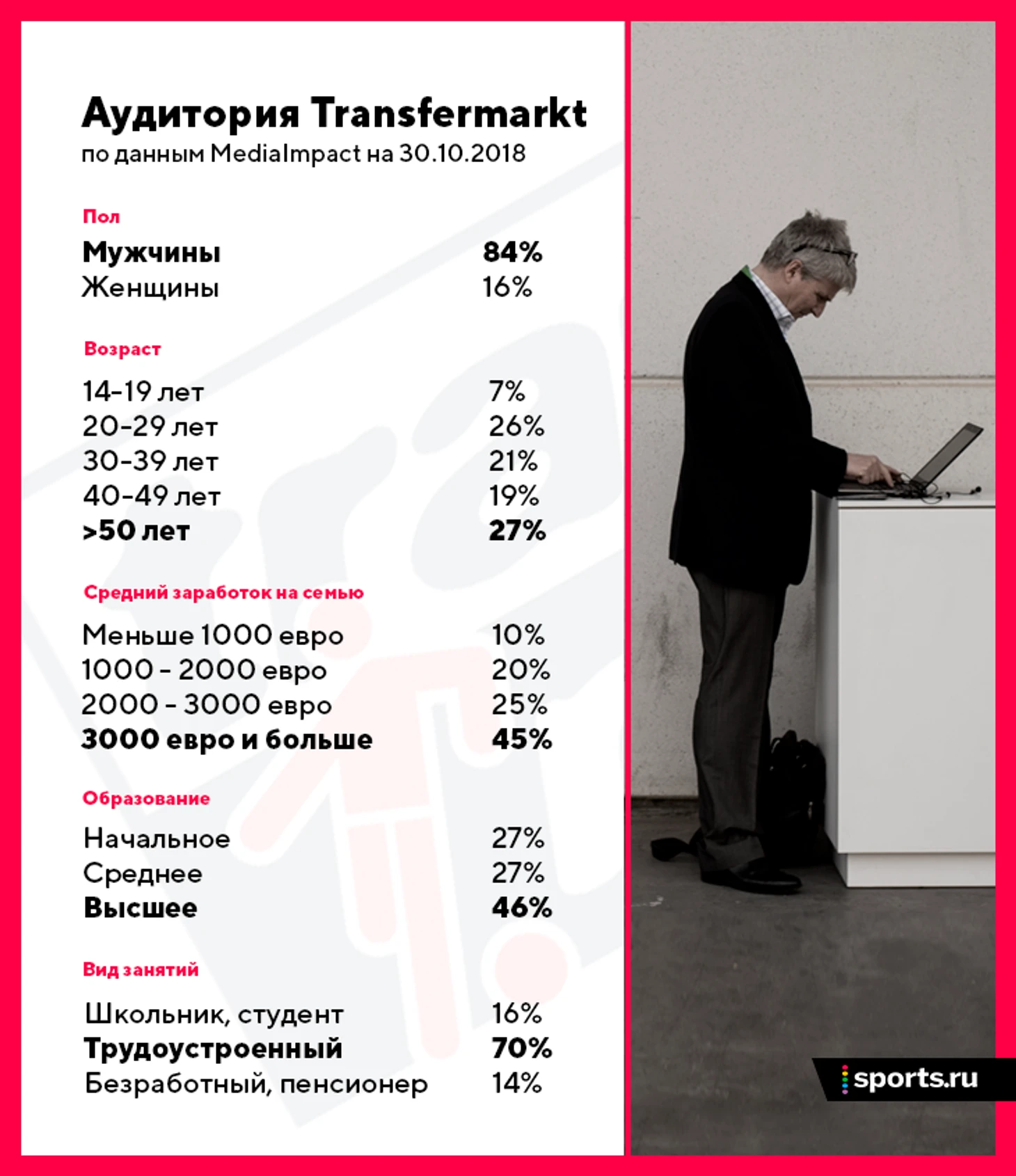 При этом это единственный ресурс, который существует только в диджитале и ориентирован на один вид спорта. Его главные конкуренты – Kicker, Sport1 и Bild (тоже часть холдинга Springer-Verlag) – пишут не только о футболе. Примечательно, что немцы составляют всего 54% аудитории ТМ, все остальные – иностранные пользователи.