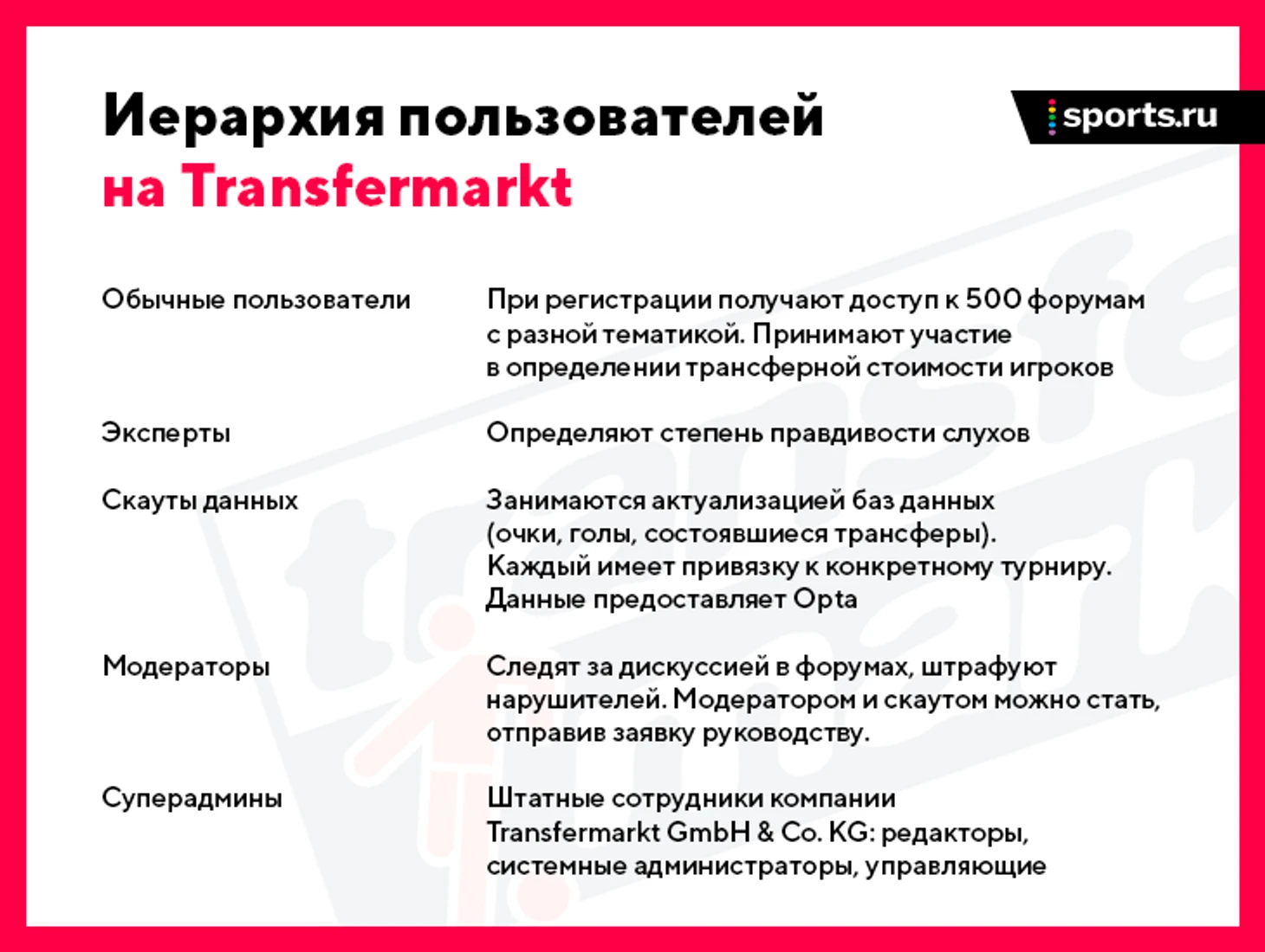 У Transfermarkt мощнейшее комьюнити. Пользователи определяют стоимость игроков и сами наполняют сайт данными