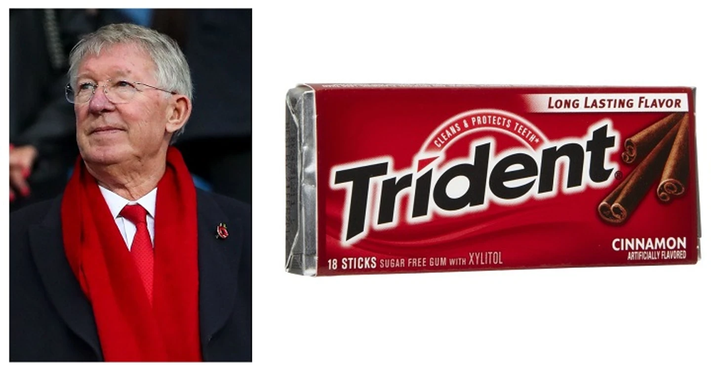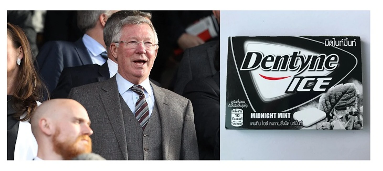 На званных ужинах Фергюсон жвачку не жевал – но подходящая в тон пачка все равно нашлась!