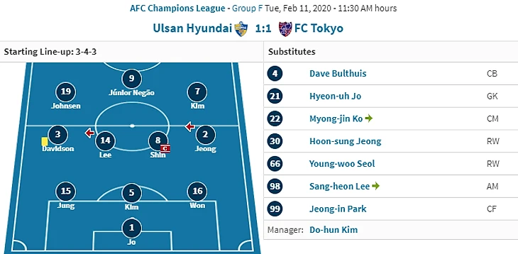 К февральскому матчу азиатской Лиги Чемпионов, которые успел провести клуб, У уже перешёл в Ульсан. Но созвучие гласных не помогло и новичку не рискнули доверить место в составе всего-то две недели спустя после появления. При этом всем понятно, что основным будет именно У.