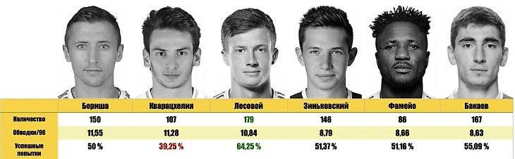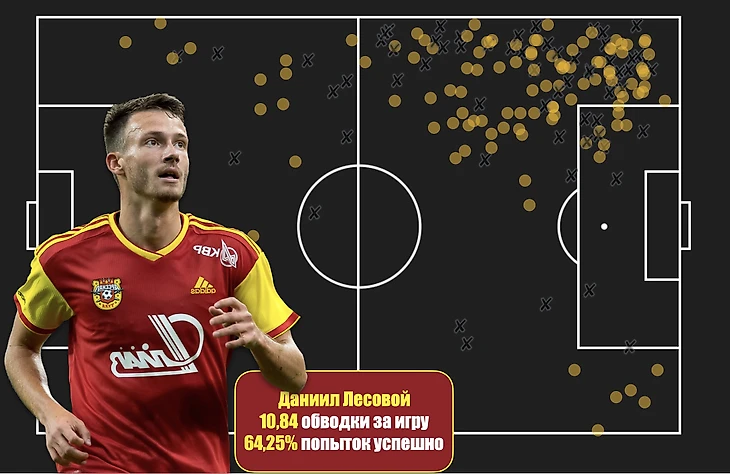 За последние годы в чемпионате России было достаточно дриблеров разной степени успешности. Среди них, разумеется, выделяются Халк, Промес, Молло, Эль Кабир, Вандерсон, Бериша, который и вовсе четырежды за последние 5 сезонов набивал наибольшее количество обводок за матч, сохраняя при этом не самую высокую эффективность и другие. Были и отечественные исполнители, способные порадовать болельщиков обыгрышем соперника 1 в 1 — Бакаев, Зиньковский, Головин. Но даже среди всех этих футболистов белой вороной выглядит Даниил Лесовой из-за совокупности среднего количества попыток обвести соперника и успешности этих самых попыток.Тем примечательнее, что лучший дриблер чемпионата летом может не пригодиться «Зениту», которому он все еще принадлежит. Конкуренция за место в составе в Петербурге высока, меж тем, параллельно с арендой Даниила, в «Сочи» успешно выступает другой футболист, претендующий на все ту же позицию левого полузащитника в составе сине-бело-голубых — Андрей Мостовой. Поэтому осенние слухи, направлявшие полузащитника «Арсенала» в московское «Динамо», появились не на пустом месте. Но достаточно ли красивой цифры в графе «успешность обводок» для того, чтобы на игрока обратили внимание?