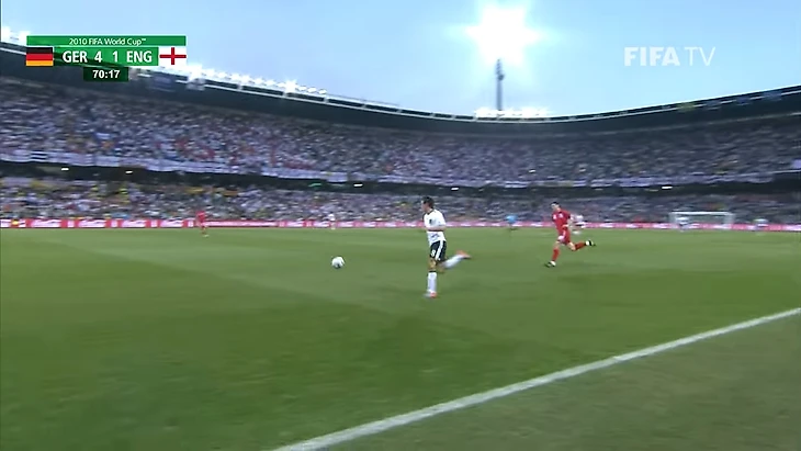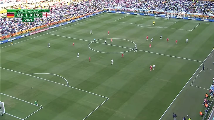 Англия начала схемой 4-4-2. А Германия схемой 4-2-3-1. Капелло хотел атаковать через центр, но Германия была к этому готова и оборонялась очень узко.