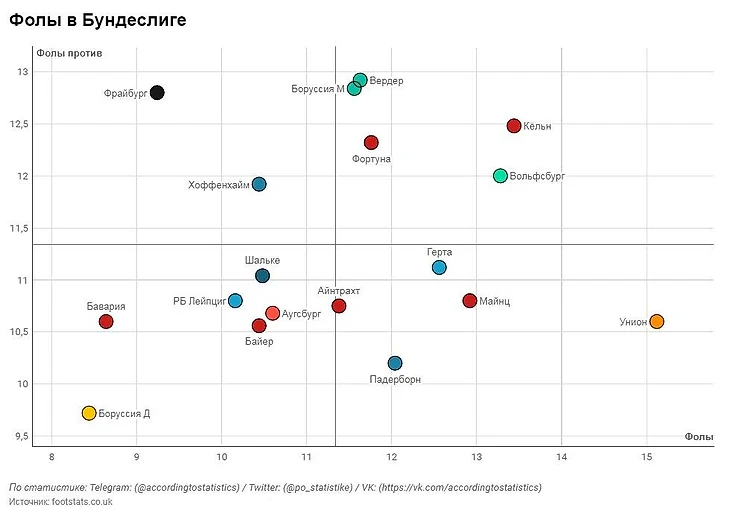 Продолжаем оценивать нынешний сезон Бундеслига с точки зрения статистики и обращаем внимание на фолы.