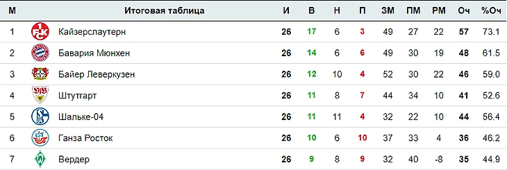 итоговая таблица Бундеслиги сезона 1997/98