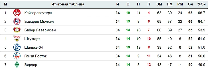 И вот, обеспечив недосягаемый отрыв в 4 очка, «Лаутерн» со спокойной душой расписали мировую с «Гамбургом» в последнем туре. Свой 301-й и последний матч в своей карьере отыграл Андреас Бреме,а по окончании игры поднял уже свой второй чемпионский кубок.