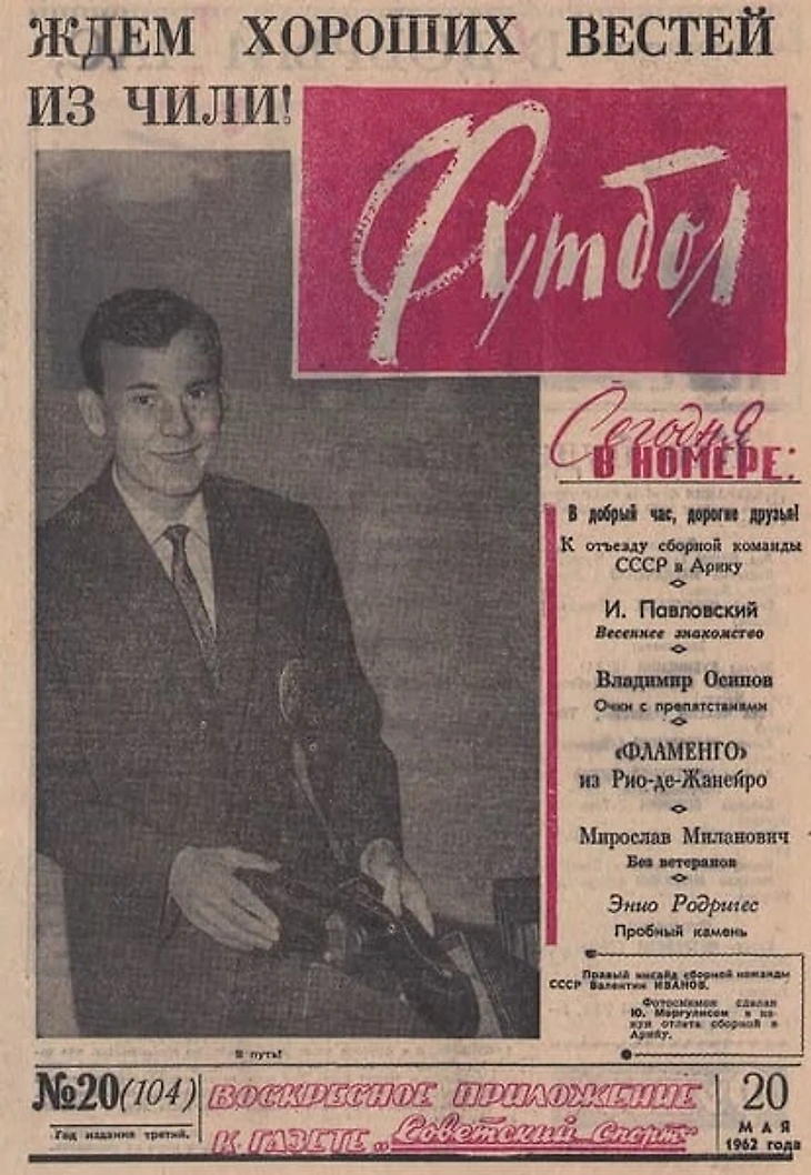 Сборная СССР отправляется на чемпионат мира. Валентин Иванов забьет в Чили четыре гола и станет одним из шести лучших бомбардиров турнира.