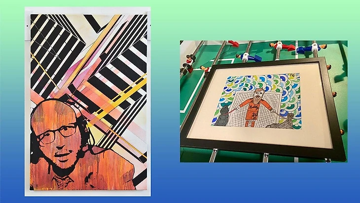 Вратарь американской команды (по совместительству – художник) и местный популярный журналист нарисовали портреты друг друга и распродали копии на онлайн-аукционе. Все вырученные средства (более 5 тысяч долларов) отправлены на поддержку местного малого бизнеса. Угадайте, кто какой портрет нарисовал в итоге: