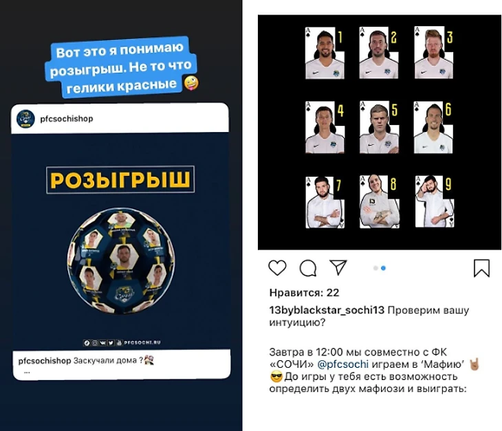 В прошлой подборке «Сочи» попали в раздел «Как делать не надо». Сегодня ситуация несколько изменилась. Слева по-прежнему то, как делать не надо – в этой истории неграмотная подпись, намеки на блогеров с сомнительной репутацией и нет ссылки на сам пост. Справа – идея организовать игру «Мафия» совместно с местной парикмахерской. Сама идея – крутая и оригинальная. Да, еще мне теперь все понятно про клубного сммщика, поклонника «красных геликов» и «Блэк стар».