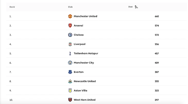 Далее идут «Манчестер Сити» (4 раза), «Арсенал» (3 раза), «Блэкберн Роверс» (1 раз) и «Лестер Сити» (1 раз).