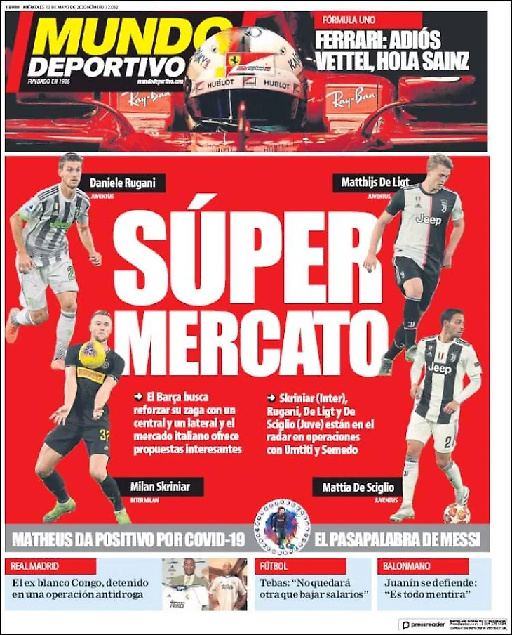 Защитник «Интера» Милан Шкриньяр привлек внимание сразу двух испанских грандов — «Реала» и «Барселоны». Каталонское издание Mundo Deportivo даже сделало его одним из героев обложки, отметив, что словак вместе с де Лигтом, де Шильо и Ругани является предметом интереса «сине-гранатовых».