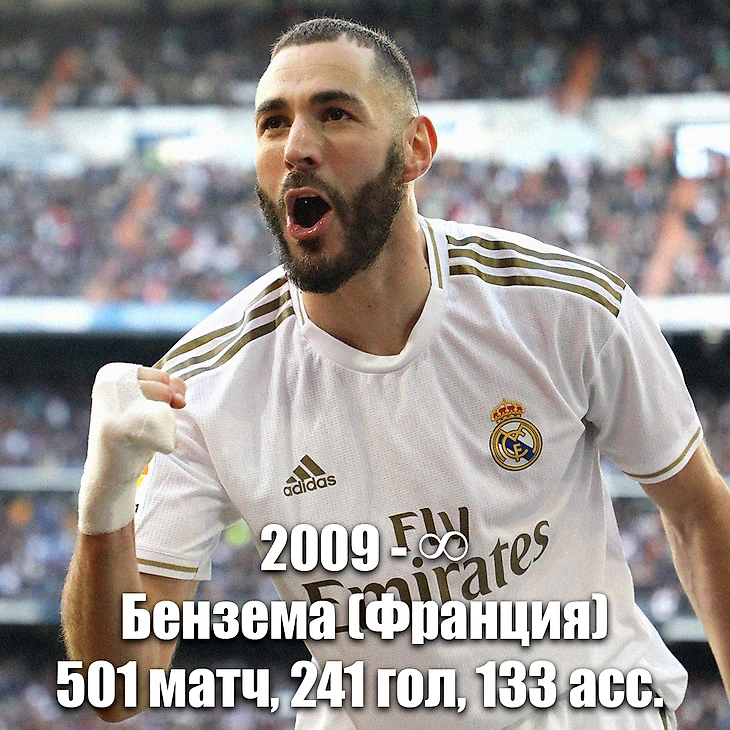 «9» с душой «10», как он сам назвал себя. Поэтому добавлю ещё и ассисты, по которым француз лучший в истории «Реала». Кстати в первый свой сезон за сливочных он носил «11».
