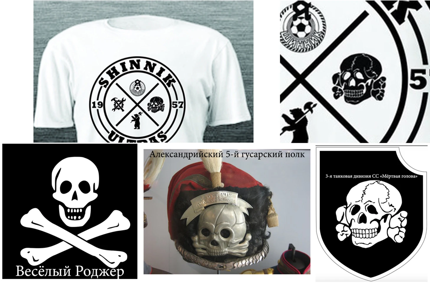 Человек, ответственный за заказы футболок, сообщил что это вообще эмблема 5-й гусарского Александрийского полка армейской кавалерии Русской императорской армии.