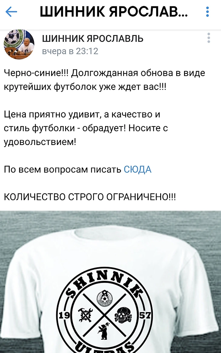 14 мая 2020 года на странице ВКонтакте, посвященной ФК Шинник Ярославль, был размещен пост о начале продажи крутейших футболок.