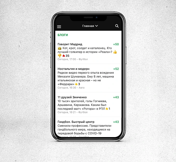Блогерские посты появляются и в мобильных приложениях Sports.ru (у нас их больше 160). На главной флагманского приложения лента блогов расположена чуть ниже ленты материалов.
