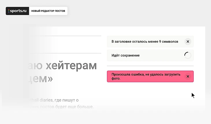 Чтобы при написании поста вся важная информация была у вас в быстром доступе, мы добавили уведомления в правой колонке редактора – теперь там видно сообщения о сохранении и публикации текста, информационные предупреждения (например о том, что количество символов в заголовке приближается к допустимому максимуму) и сообщения об ошибках.