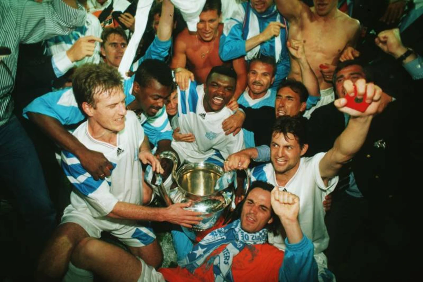 Долгожданная победа марсельского «Олимпика», когда в финале был побежден «Милан» (под грустную мелодию «Лебединой песни», великого Марко Ван Бастена) была, честно, логичной. Теперь модно бросать камень на пьяного в водосточной трубе, но состав средиземноморского клуба был не хуже плеяды «Баварии». Если кто забыл, а на поле то, выходили одновременно: Жан Жак Эйдели, Руди Фёллер, Алан Бокшич, Франк Созе, Эрик Де Меко, Фабьен Бартез, Дидье Дешам ( хорошо, Дешам, без «п»), Абеди Пеле, Жослен Англома, Марсель Десаи !!!