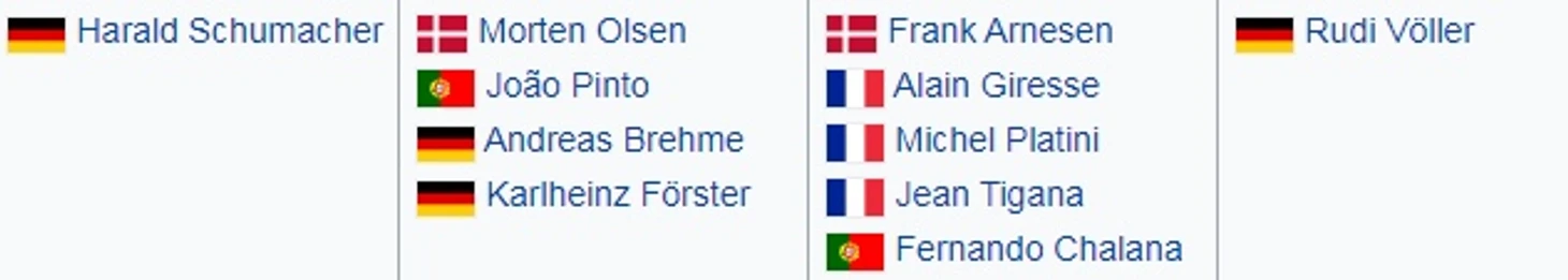 Хорошо не повстречались с Германией, которая не проснулась и даже в сонном состоянии выглядела мощно. Например, в символическую сборную турнира попали 4 немца, хотя команда не вышла из группы. Видели такого? А Шумахер, Бреме, Фёрстер и Фёллер показали нам. Смотрите, мсье.