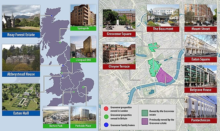 Владения Grovesnor Estate в Британии (слева) и в центре Лондона (справа).