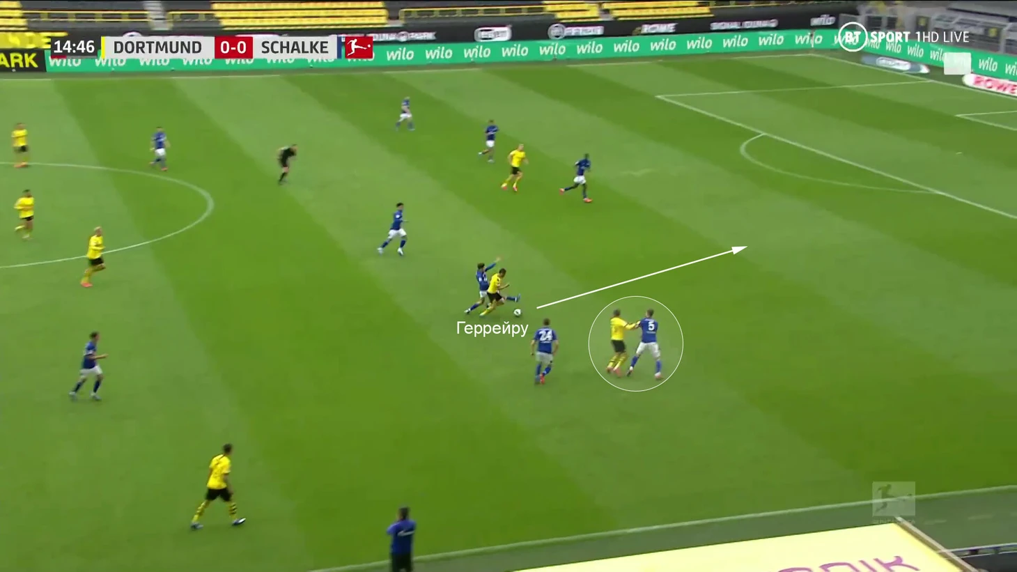 Это здорово работало, потому что Юлиан умен и хорошо выбирал моменты для таких смещений. Бонусом это затрудняло «Шальке» оборону через персональные ориентировки.