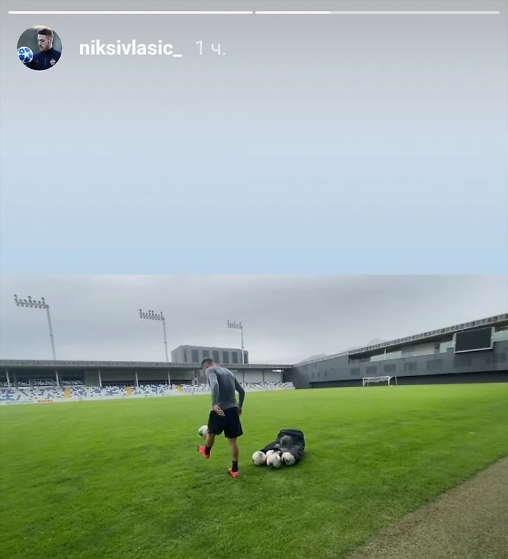 Сегодня футболист потренировался на поле небольшого стадиона. Фрагмент занятия Влашич опубликовал в «сторис» своей страницы в Инстаграме.