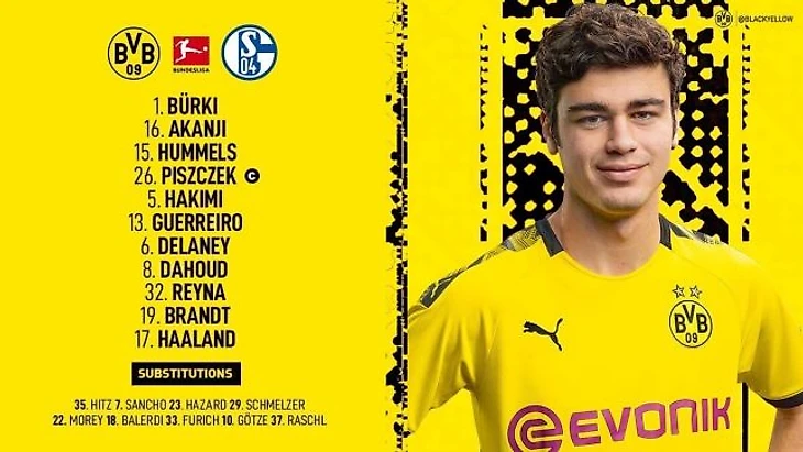 Как обычно, за час до игры тренеры объявили составы команд: в старте «Боруссии» впервые должен был выйти 17-летний Джованни Рейна, однако появился Бюрки, Хакими, Делейни, Дауд, Геррейру, Хуммельс, Аканджи, Холанд, Брандт, Пищек и Азар.