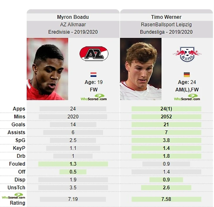 Очевидно, сейчас Майрон уступает ему во всём. Но на то Боаду и 19 лет, а Вернеру уже 24. Для Майрона это первый серьёзный сезон в большом футболе, а для Вернера это лучший в карьере сезон в команде, в которой он уже не первый год. У голландца есть ещё 5 лет, чтобы догнать немца и даже перегнать его. Главное, сделать правильные выборы в карьере.
