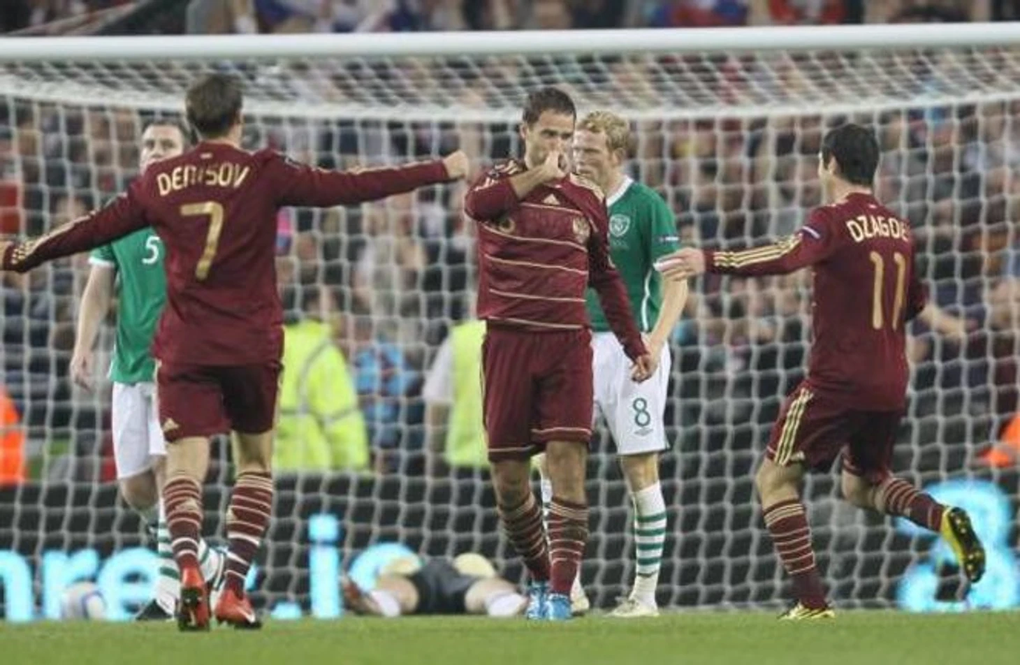Один из первых матчей у руля сборной России Дика Адвоката. Скомкано начавшийся отборочный цикл к Евро-2012 после неубедительной победы над Андоррой и домашнего поражения от Словакии, нужно было как то спасать в гостевом матче с главными конкурентами ирландцами. Матч, начавшийся с атак обеих команд, обещал голевую феерию. На первых минутах наши игроки, "прощупав" соперника перешли на чужую половину поля и захватили преимущество во владении. Но спокойствие наших парней едва не сыграло злую шутку. Затяжной суперопасной атаки хозяев лишь самую малость не хватило для капитуляции Игоря Акинфеева. Но счёт открыли футболисты сборной России. За снос игрока нашей команды на фланге был назначен штрафной удар. После подачи Аршавина в штрафную площадь на опережении сыграл Игнашевич, и отпасовав через себя на набегающего Кержакова, позволил тому открыть счёт 0:1!! Далее наша сборная прибрала к ногам всю территорию, а главное мяч. Не испытывая большого сопротивления, игроки нашей команды раз за разом создавали моменты у ворот Шея Гивена. И на 28-ой минуте после паса с фланга Александра Анюкова и эффектного пропуска мяча Кержаковым, своё имя на табло записал Алан Дзагоев, которому оставалось только попасть мимо вратаря хозяев. 2:0! Создав ещё пару моментов, до перерыва команды больше не смогли поразить ворота друг друга. Второй тайм начался с взаимных полумоментов. Но опять забили наши! На 50-ой минуте протащивший мяч Широков нанёс удар низом по воротам хозяев. Мяч, срикошетив от защитника, залетел в угол ворот Гивена. Нужно отметить, что после того, как счёт стал 3:0, наши футболисты, создав ещё пару моментов, откровенно расслабились. Отдав территорию и мяч, россияне с каждой минутой позволяли подходить к своим воротам всё ближе и ближе. На 71-ой минуте простой заброс в штрафную приводит к сомнительному пенальти в наши ворота. Кин был точен. Забитый гол подстегнул хозяев и на 78-ой минуте они отыгрывают ещё один гол. За нерасторопность наших центральных защитников в собственной штрафной, забил Лонг. И теперь за, казалось бы сто процентную победу, надо было ещё попотеть. Но несмотря на поддержку родных трибун и желание отыграться, ирландцы из-за усталости возле наших ворот создать ничего не смогли. Наши футболисты же на против, могли ещё забить пару моментов. Гостевая победа 3:2 придала уверенности нашим парням и помогла возглавить свою отборочную группу.